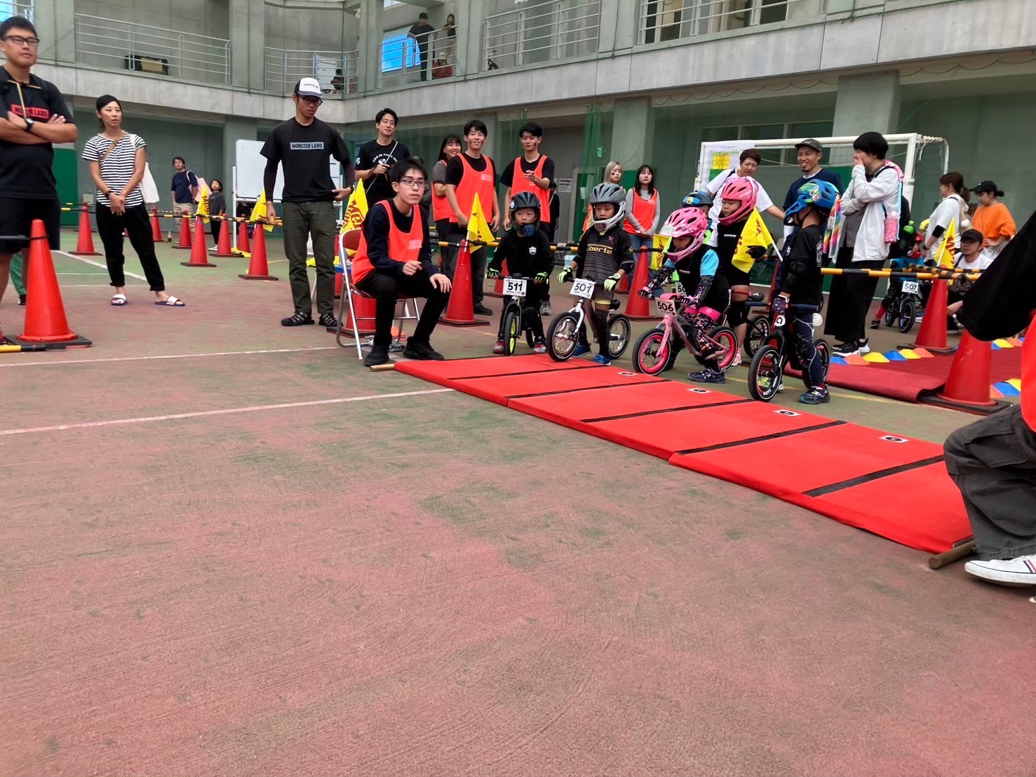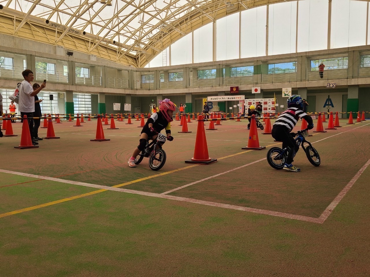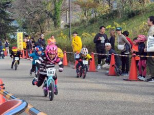キッズランバイクとは、幼児を対象としたペダル・ブレーキのない二輪車を足で地面を蹴って走る競技です!