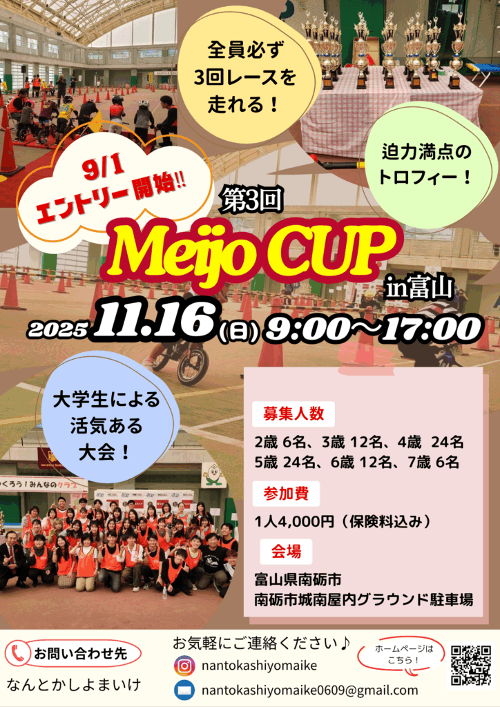 - タイムスケジュール更新!こんにちは! 名城大学課外活動グループ『なんとかしよまいけ』です🌟 第3回Meijo CUPのタイムスケジュールを更新しました!! 少し時間が前後しているので、ご確認お願いしま🙇♀️ (日のレース状況により時間が前 […]