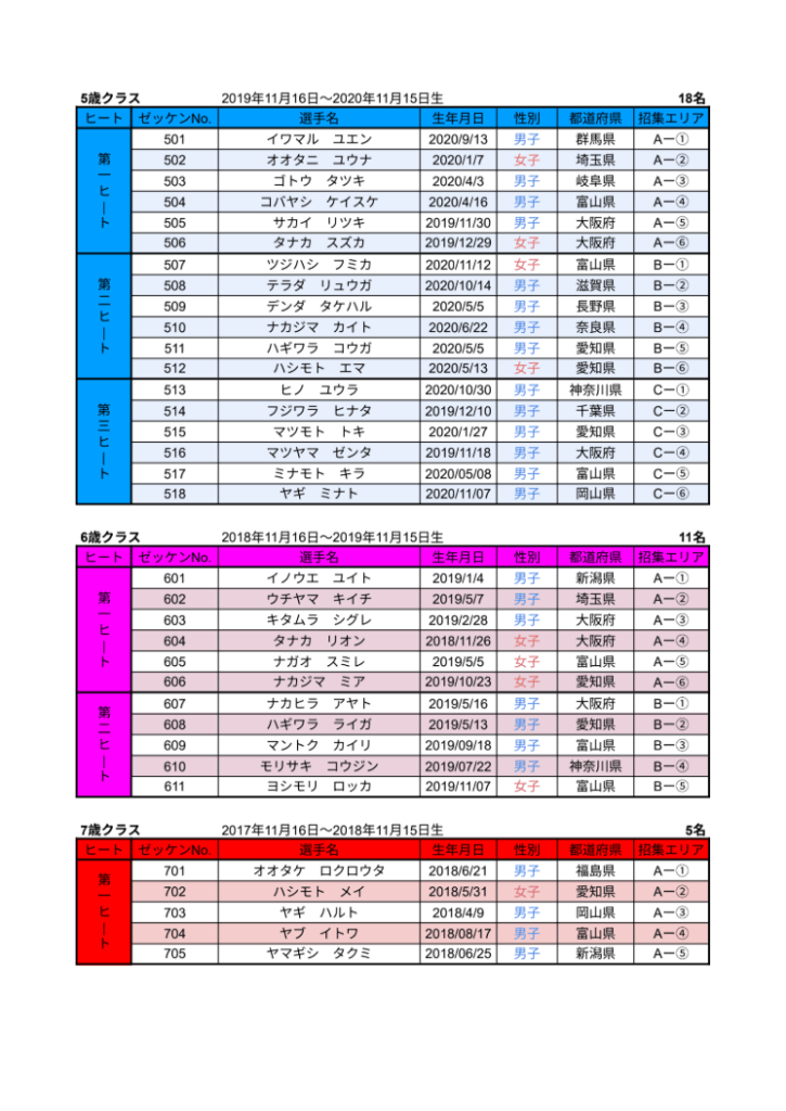 予備予選出走リストも確定エントリーリスト同様にホームページの大会情報→予備予選出走リストに載っています!