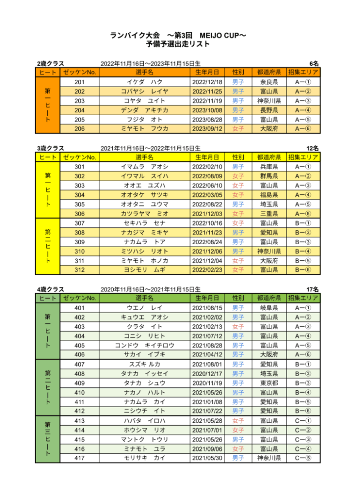 第3回 Meijo CUPの予備予選出走リストを公開しました!!